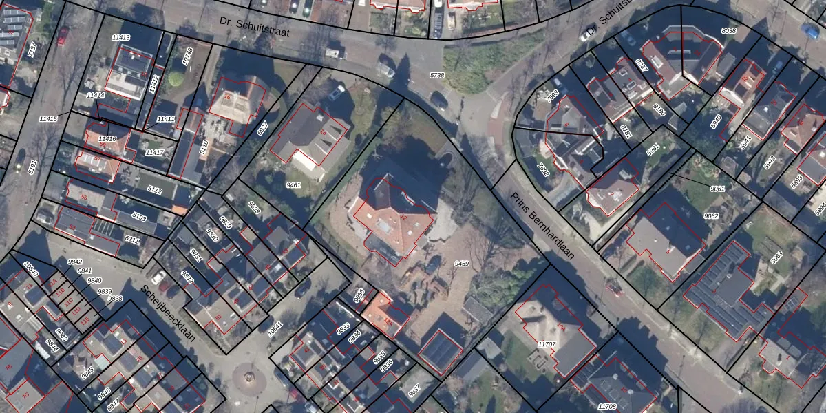 Het perceel waarop Prins Bernhardlaan 12 staat heeft een oppervlakte van 2123 m². Dit is een zeer groot perceel. De perceeloppervlakte wordt geregistreerd door het Kadaster. Gedetailleerde informatie over de maten van dit perceel kunt u vinden in het rapport Kadastrale kaart met maatvoering van Prins Bernhardlaan 12.