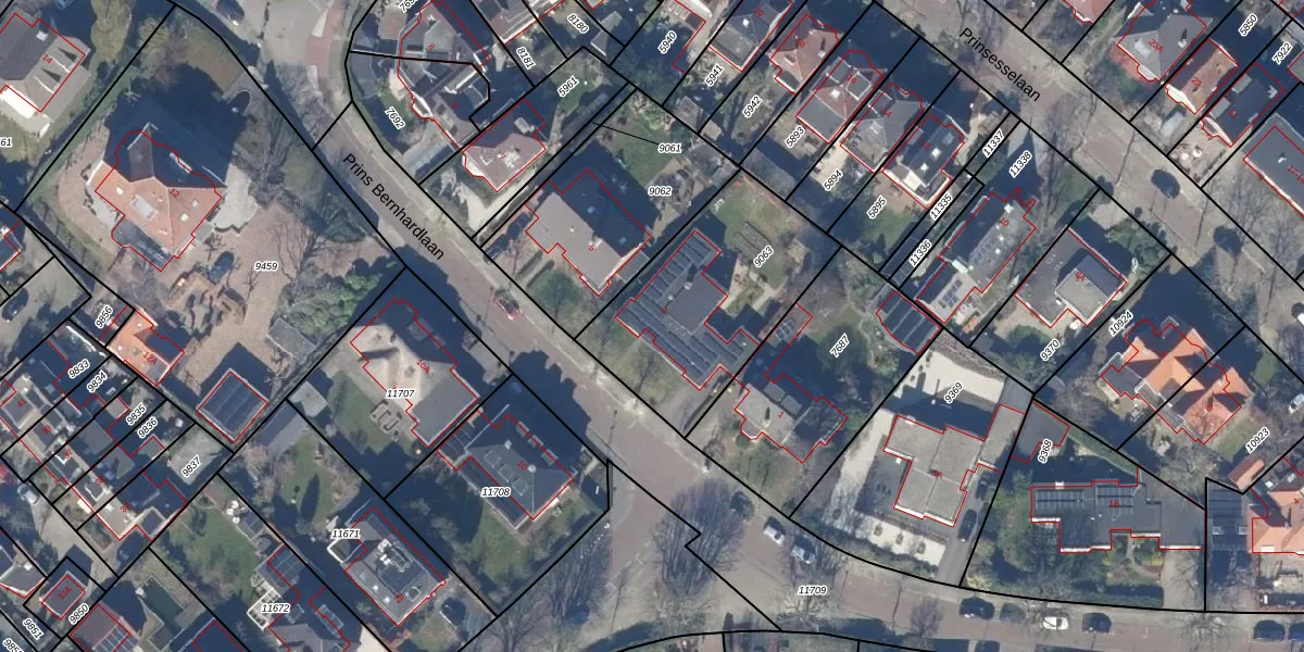 Het perceel waarop Prins Bernhardlaan 3 staat heeft een oppervlakte van 793 m². Dit is een groot perceel. De perceeloppervlakte wordt geregistreerd door het Kadaster. Gedetailleerde informatie over de maten van dit perceel kunt u vinden in het rapport Kadastrale kaart met maatvoering van Prins Bernhardlaan 3.
