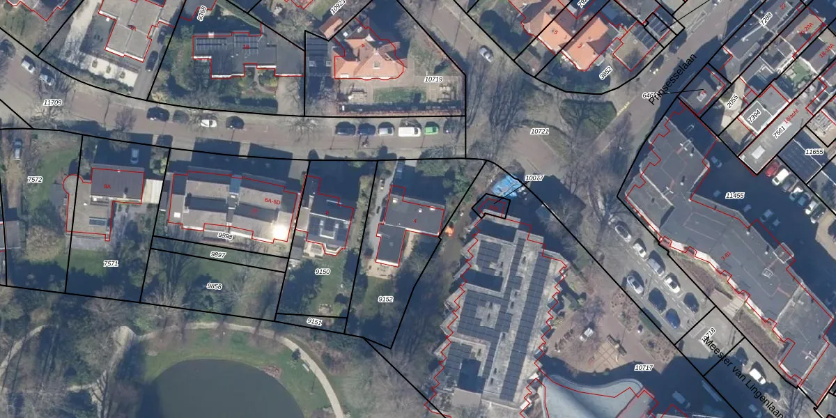 Het perceel waarop Prins Bernhardlaan 4 staat heeft een oppervlakte van 763 m². Dit is een groot perceel. De perceeloppervlakte wordt geregistreerd door het Kadaster. Gedetailleerde informatie over de maten van dit perceel kunt u vinden in het rapport Kadastrale kaart met maatvoering van Prins Bernhardlaan 4.