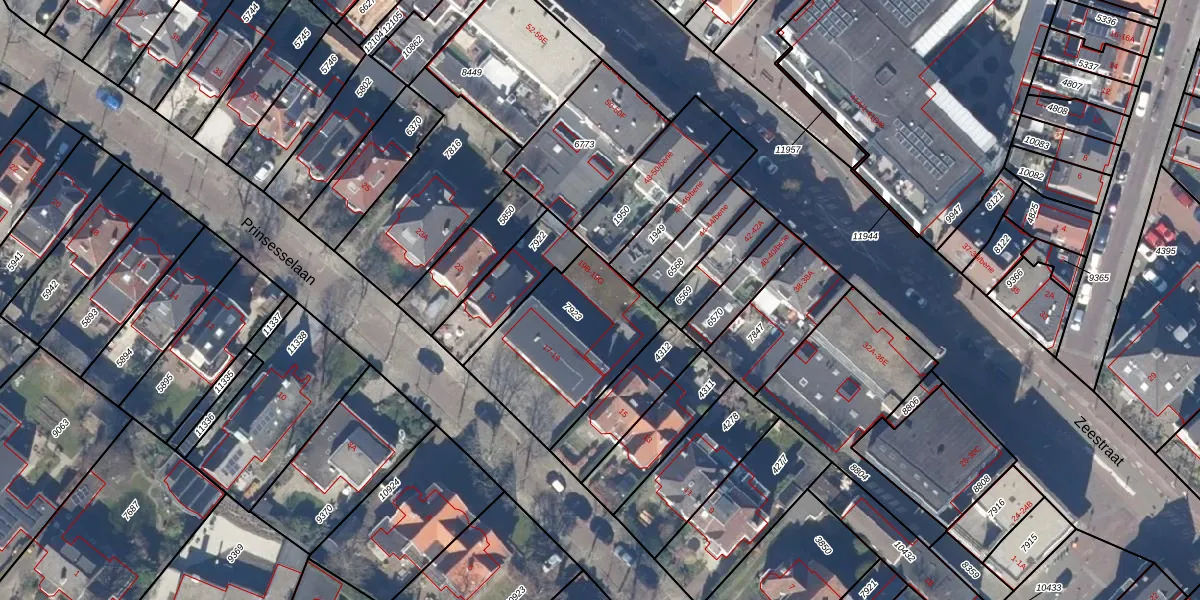 Het perceel waarop Prinsesselaan 19-E staat heeft een oppervlakte van 578 m². Dit is een groot perceel. De perceeloppervlakte wordt geregistreerd door het Kadaster. Gedetailleerde informatie over de maten van dit perceel kunt u vinden in het rapport Kadastrale kaart met maatvoering van Prinsesselaan 19-E.