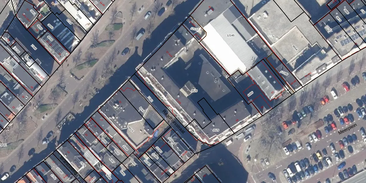 Raadhuisstraat 45 is gelegen op kadastraal perceel BVW00A9528. Deze kadastrale aanduiding is uniek en wordt gebruikt door het Kadaster om eigendomsrechten en andere zakelijke rechten vast te leggen. Het perceel maakt onderdeel uit van de kadastrale gemeente Beverwijk.