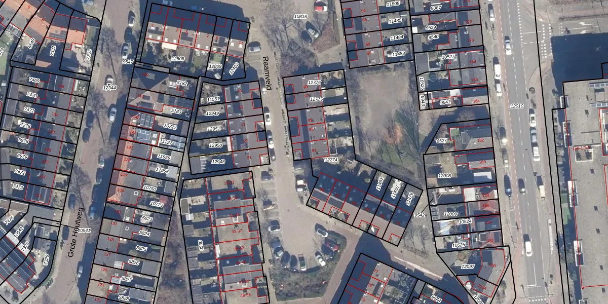 Het perceel waarop Raamveld 91 staat heeft een oppervlakte van 689 m². Dit is een groot perceel. De perceeloppervlakte wordt geregistreerd door het Kadaster. Gedetailleerde informatie over de maten van dit perceel kunt u vinden in het rapport Kadastrale kaart met maatvoering van Raamveld 91.