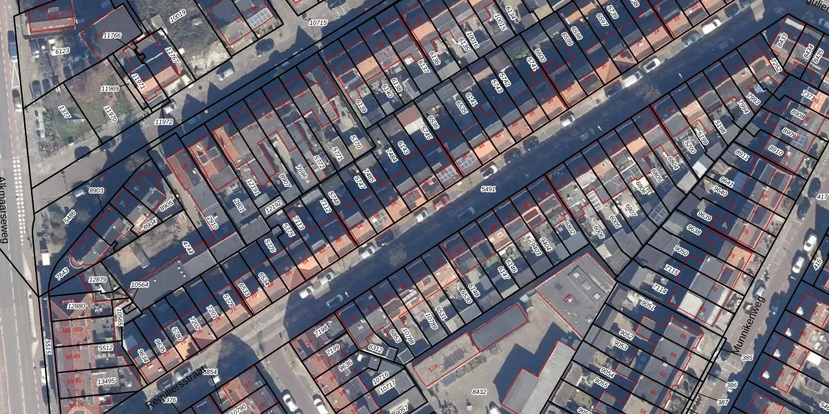Gebruik de zoekbalk of klik op een perceel voor informatie over de adressen binnen dit perceel.