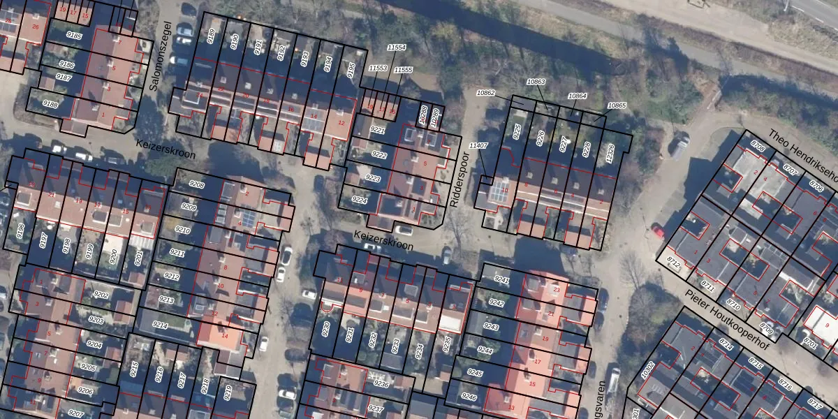 Gebruik de zoekbalk of klik op een perceel voor informatie over de adressen binnen dit perceel.