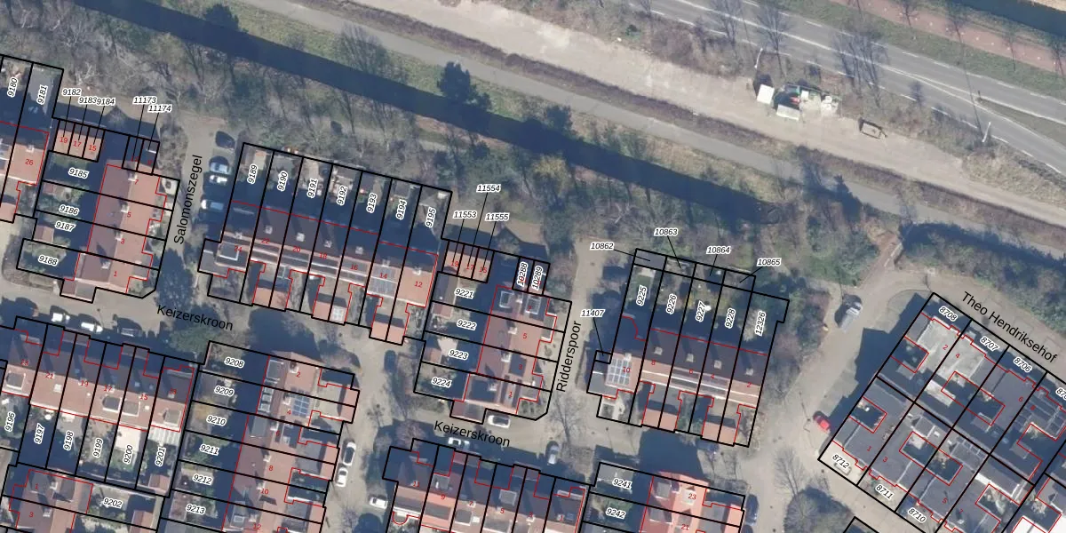 Het perceel waarop Ridderspoor 11 staat heeft een oppervlakte van 18 m². Dit is een klein perceel. De perceeloppervlakte wordt geregistreerd door het Kadaster. Gedetailleerde informatie over de maten van dit perceel kunt u vinden in het rapport Kadastrale kaart met maatvoering van Ridderspoor 11.