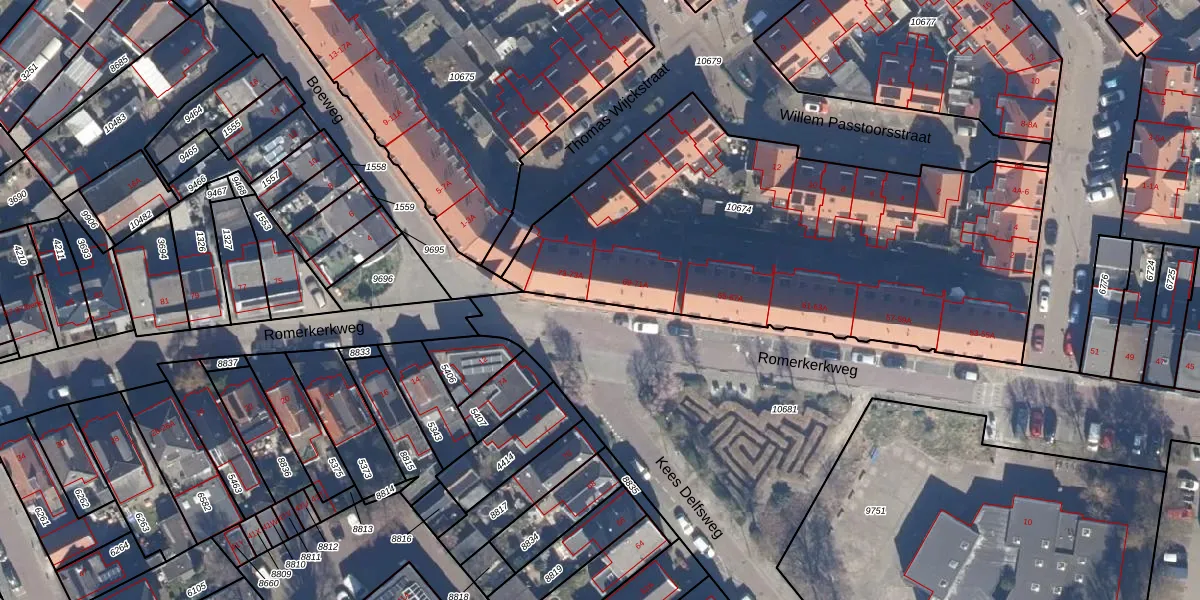 Het perceel waarop het adres ligt is BVW00-A-10674. De afkorting 'BVW00' staat voor kadastrale gemeente Beverwijk. De gemiddelde perceeloppervlakte in de kadastrale gemeente Beverwijk is 2016,89 m². Dit perceel is met zijn 2434 m² dus groter dan gemiddeld. De grootste perceeloppervlakte in de kadastrale gemeente is 1,31 km². De kleinste oppervlakte bedraagt 0 m². Op het perceel zijn 36 adressen aanwezig. De huidige grenzen van het perceel zijn digitaal in de Basisregistratie Kadaster (BRK) geregistreerd op 20-09-2002.