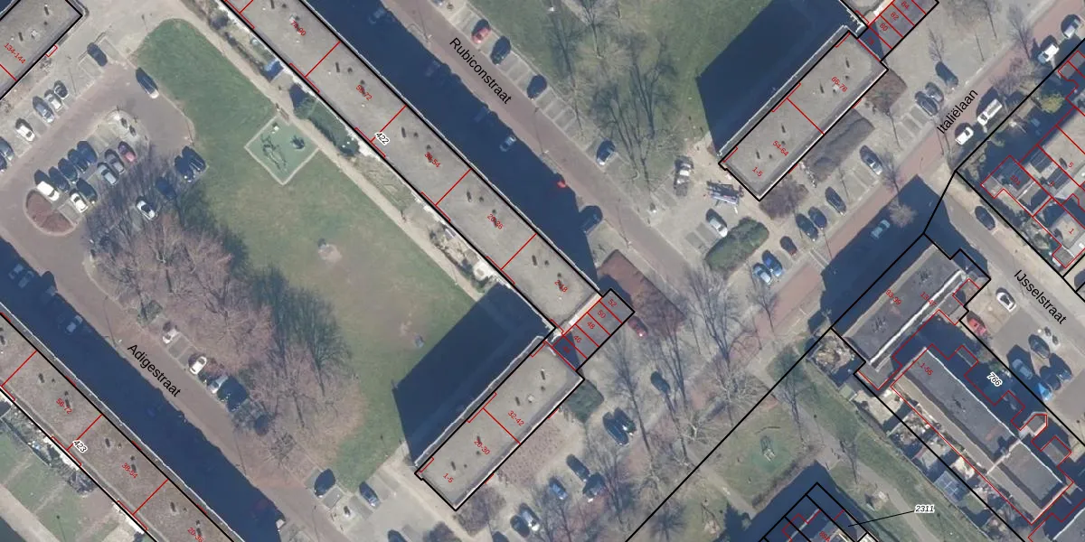 Het perceel waarop Rubiconstraat 12 staat heeft een oppervlakte van 1483 m². Dit is een zeer groot perceel. De perceeloppervlakte wordt geregistreerd door het Kadaster. Gedetailleerde informatie over de maten van dit perceel kunt u vinden in het rapport Kadastrale kaart met maatvoering van Rubiconstraat 12.