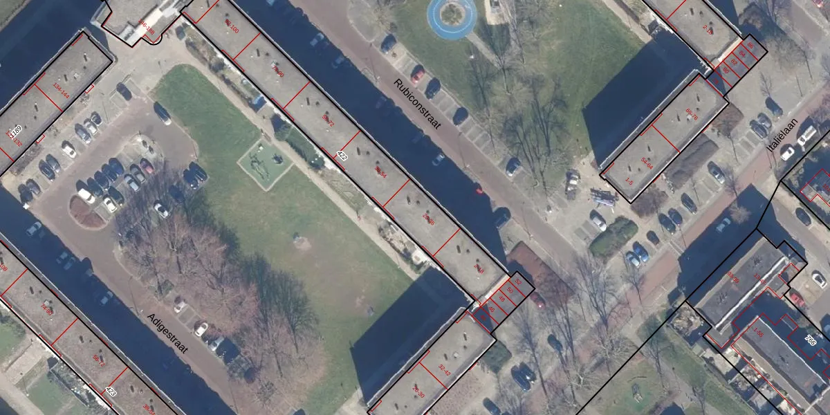 Het perceel waarop Rubiconstraat 30 staat heeft een oppervlakte van 1483 m². Dit is een zeer groot perceel. De perceeloppervlakte wordt geregistreerd door het Kadaster. Gedetailleerde informatie over de maten van dit perceel kunt u vinden in het rapport Kadastrale kaart met maatvoering van Rubiconstraat 30.