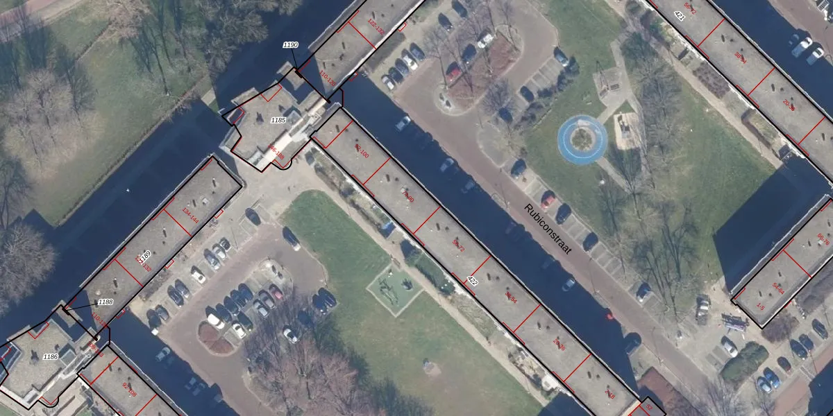 Het perceel waarop Rubiconstraat 80 staat heeft een oppervlakte van 1483 m². Dit is een zeer groot perceel. De perceeloppervlakte wordt geregistreerd door het Kadaster. Gedetailleerde informatie over de maten van dit perceel kunt u vinden in het rapport Kadastrale kaart met maatvoering van Rubiconstraat 80.