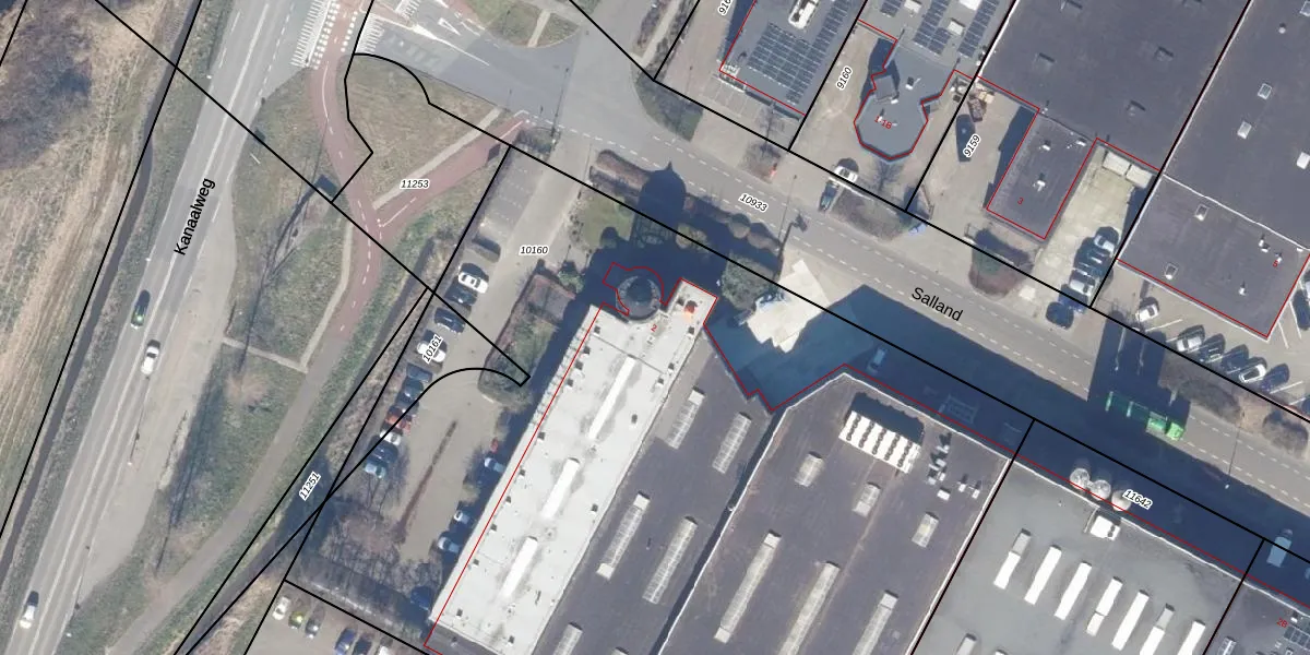 Het perceel waarop Salland 2 staat heeft een oppervlakte van 6545 m². Dit is een zeer groot perceel. De perceeloppervlakte wordt geregistreerd door het Kadaster. Gedetailleerde informatie over de maten van dit perceel kunt u vinden in het rapport Kadastrale kaart met maatvoering van Salland 2.