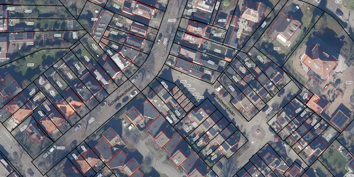 Het perceel waarop Scheijbeecklaan 11-A staat heeft een oppervlakte van 19 m². Dit is een klein perceel. De perceeloppervlakte wordt geregistreerd door het Kadaster. Gedetailleerde informatie over de maten van dit perceel kunt u vinden in het rapport Kadastrale kaart met maatvoering van Scheijbeecklaan 11-A.