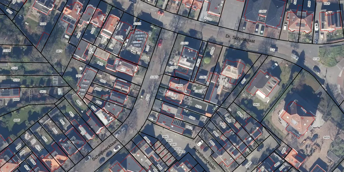 Het perceel waarop Scheijbeecklaan 59 staat heeft een oppervlakte van 211 m². Dit is een middelgroot perceel. De perceeloppervlakte wordt geregistreerd door het Kadaster. Gedetailleerde informatie over de maten van dit perceel kunt u vinden in het rapport Kadastrale kaart met maatvoering van Scheijbeecklaan 59.