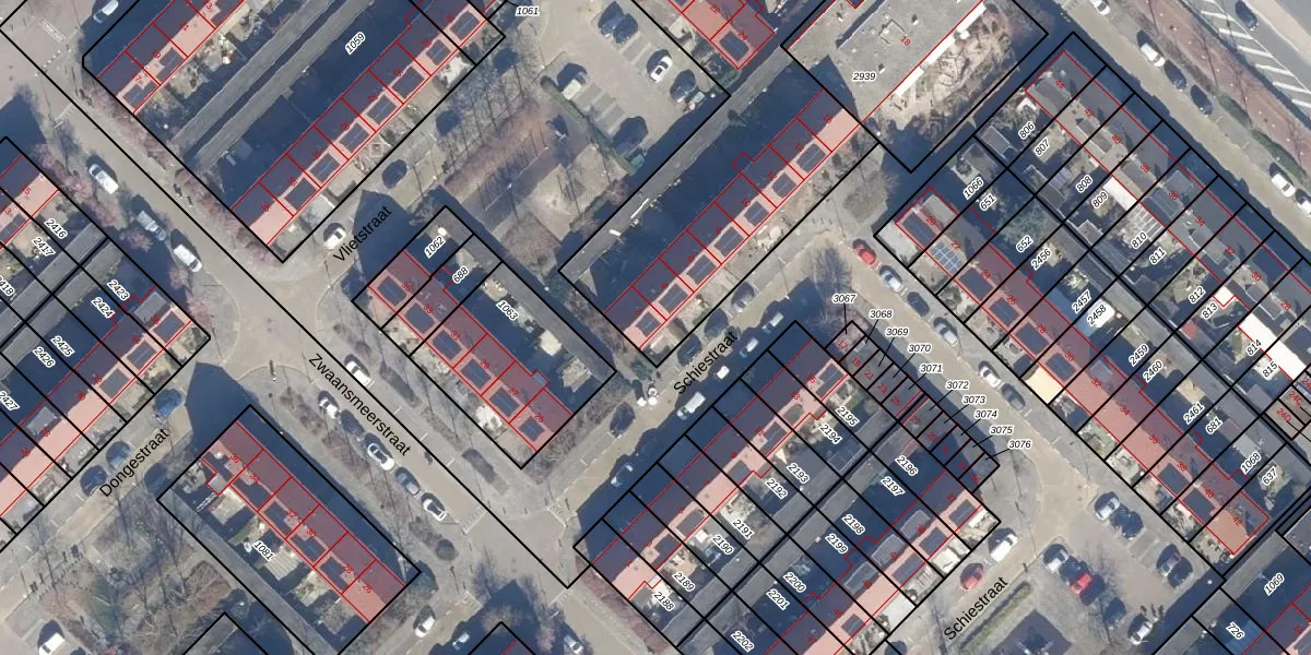 Het perceel waarop Schiestraat 2 staat heeft een oppervlakte van 2633 m². Dit is een zeer groot perceel. De perceeloppervlakte wordt geregistreerd door het Kadaster. Gedetailleerde informatie over de maten van dit perceel kunt u vinden in het rapport Kadastrale kaart met maatvoering van Schiestraat 2.