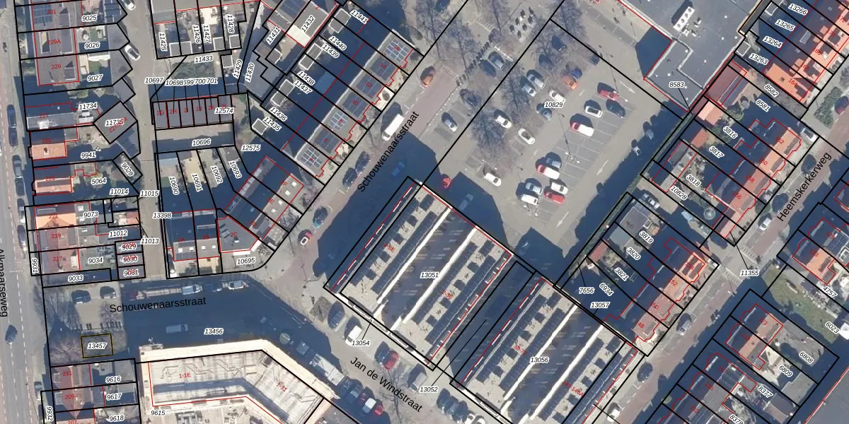 Schouwenaarsstraat 3-E is gelegen op kadastraal perceel WIJ02B13051. Deze kadastrale aanduiding is uniek en wordt gebruikt door het Kadaster om eigendomsrechten en andere zakelijke rechten vast te leggen. Het perceel maakt onderdeel uit van de kadastrale gemeente Wijk aan Zee en Duin.