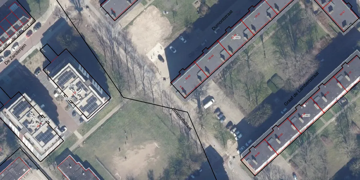 Het perceel waarop Smirnoffstraat 11 staat heeft een oppervlakte van 1494 m². Dit is een zeer groot perceel. De perceeloppervlakte wordt geregistreerd door het Kadaster. Gedetailleerde informatie over de maten van dit perceel kunt u vinden in het rapport Kadastrale kaart met maatvoering van Smirnoffstraat 11.