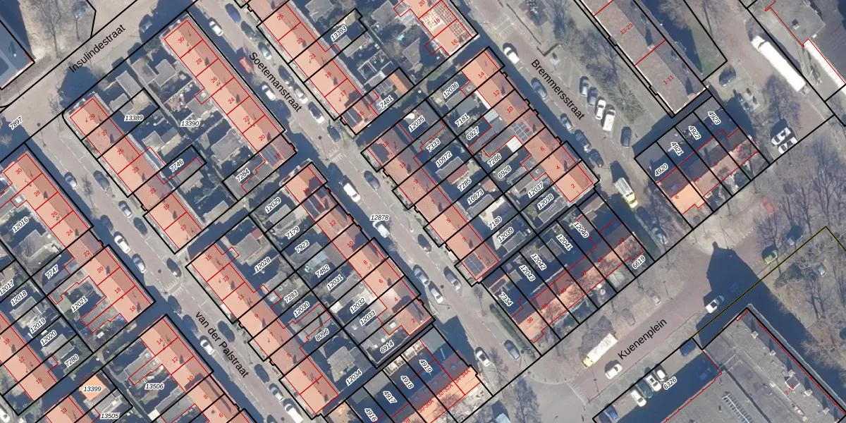 Het perceel waarop Soetemanstraat 7 staat heeft een oppervlakte van 103 m². Dit is een middelgroot perceel. De perceeloppervlakte wordt geregistreerd door het Kadaster. Gedetailleerde informatie over de maten van dit perceel kunt u vinden in het rapport Kadastrale kaart met maatvoering van Soetemanstraat 7.