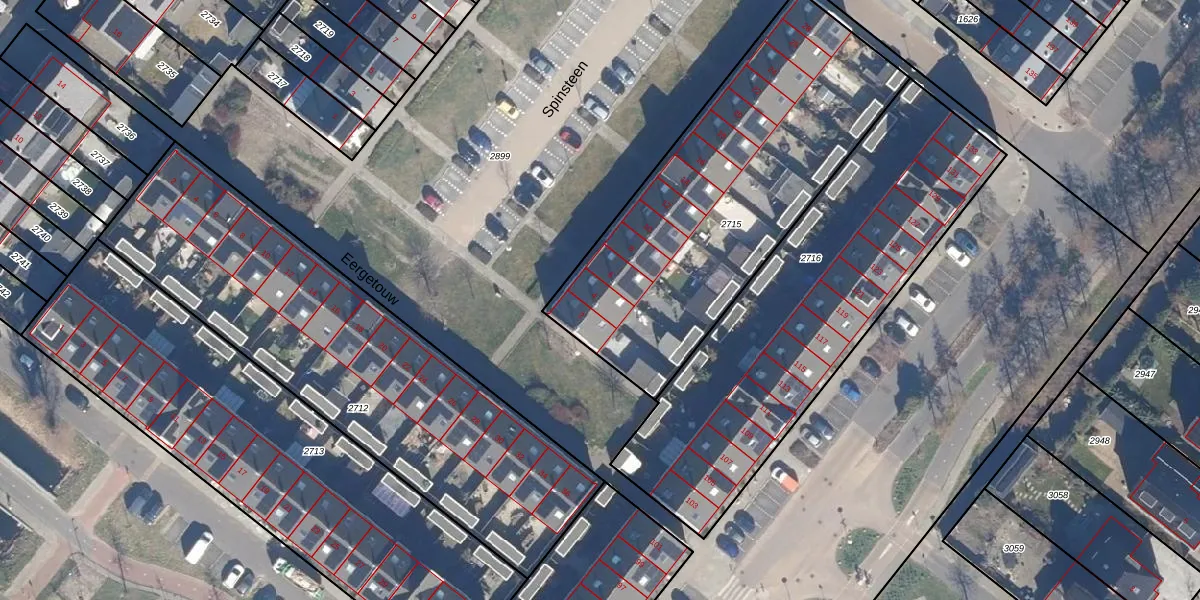 Het perceel waarop Spinsteen 4 staat heeft een oppervlakte van 1640 m². Dit is een zeer groot perceel. De perceeloppervlakte wordt geregistreerd door het Kadaster. Gedetailleerde informatie over de maten van dit perceel kunt u vinden in het rapport Kadastrale kaart met maatvoering van Spinsteen 4.