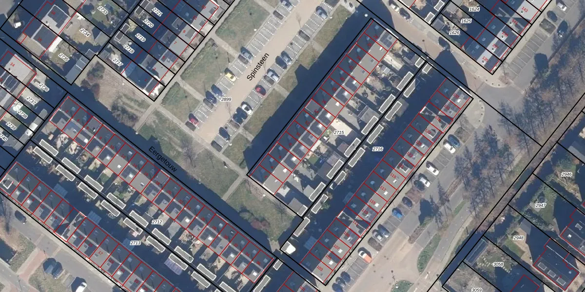 Het perceel waarop Spinsteen 8 staat heeft een oppervlakte van 1640 m². Dit is een zeer groot perceel. De perceeloppervlakte wordt geregistreerd door het Kadaster. Gedetailleerde informatie over de maten van dit perceel kunt u vinden in het rapport Kadastrale kaart met maatvoering van Spinsteen 8.