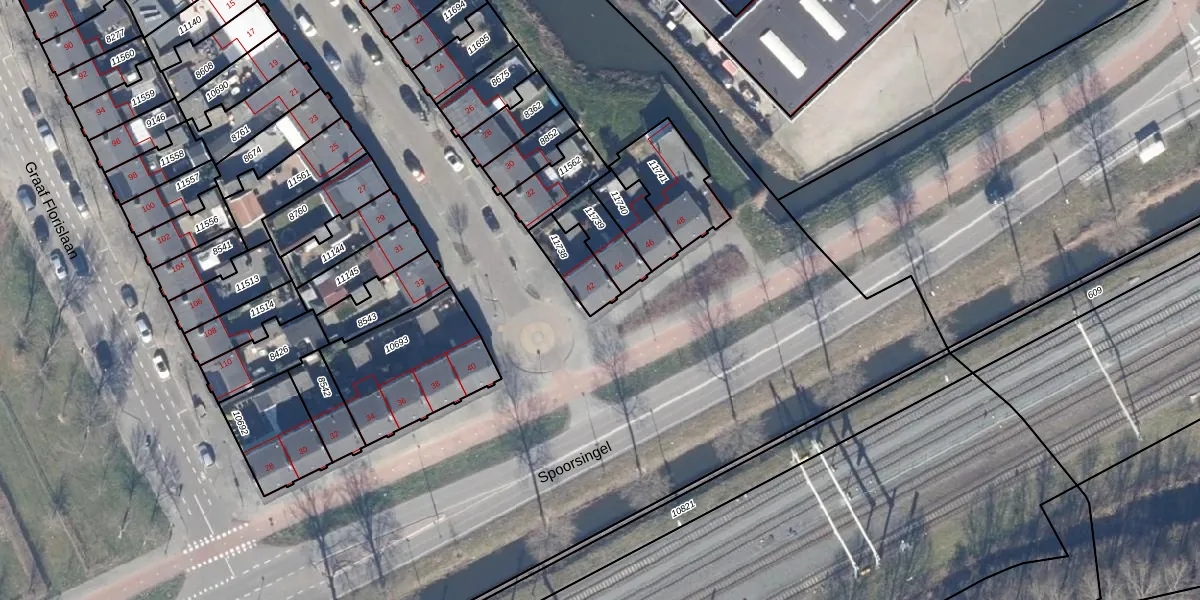 Het perceel waarop Spoorsingel 42 staat heeft een oppervlakte van 110 m². Dit is een middelgroot perceel. De perceeloppervlakte wordt geregistreerd door het Kadaster. Gedetailleerde informatie over de maten van dit perceel kunt u vinden in het rapport Kadastrale kaart met maatvoering van Spoorsingel 42.