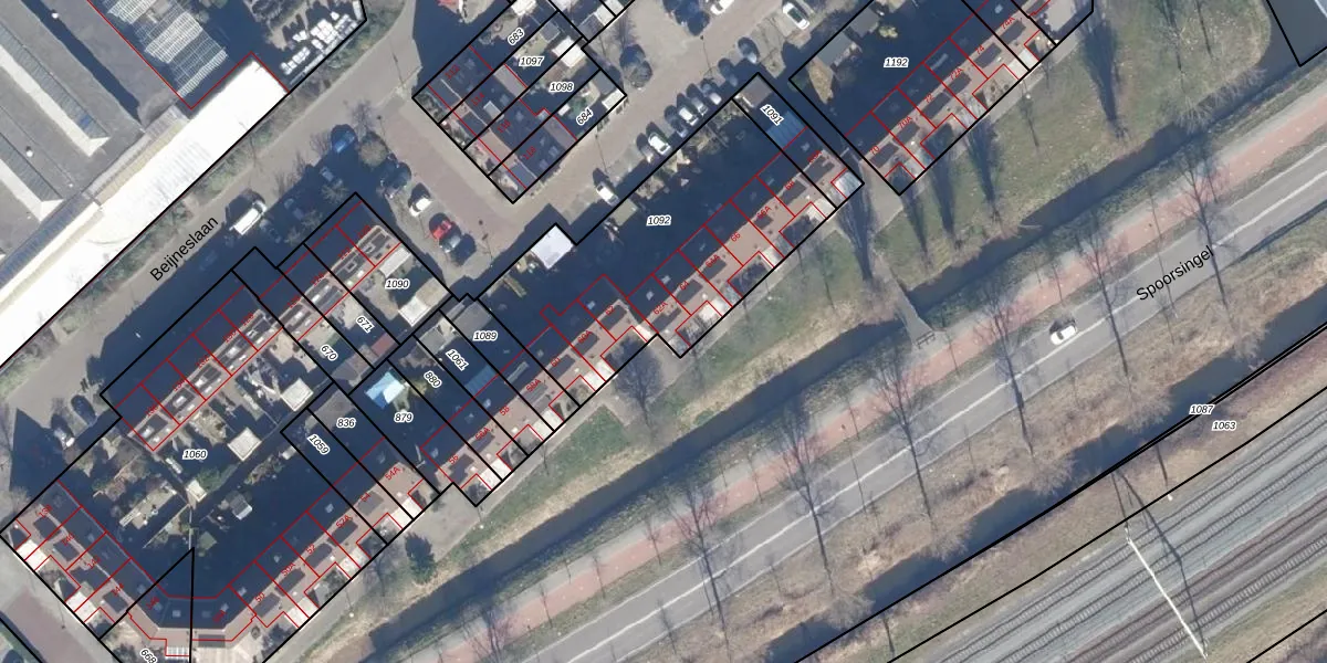 Het perceel waarop Spoorsingel 62-A staat heeft een oppervlakte van 1120 m². Dit is een zeer groot perceel. De perceeloppervlakte wordt geregistreerd door het Kadaster. Gedetailleerde informatie over de maten van dit perceel kunt u vinden in het rapport Kadastrale kaart met maatvoering van Spoorsingel 62-A.
