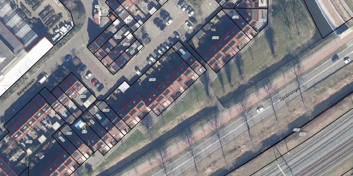 Het perceel waarop Spoorsingel 66 staat heeft een oppervlakte van 1120 m². Dit is een zeer groot perceel. De perceeloppervlakte wordt geregistreerd door het Kadaster. Gedetailleerde informatie over de maten van dit perceel kunt u vinden in het rapport Kadastrale kaart met maatvoering van Spoorsingel 66.