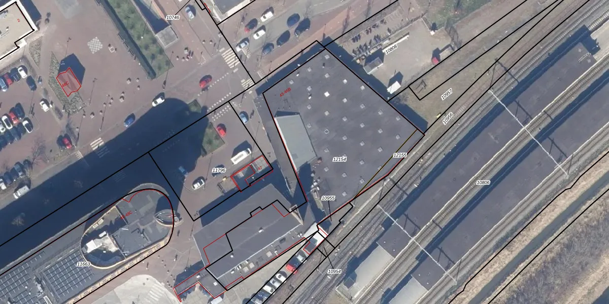 Het perceel waarop Stationsplein 45-A staat heeft een oppervlakte van 2060 m². Dit is een zeer groot perceel. De perceeloppervlakte wordt geregistreerd door het Kadaster. Gedetailleerde informatie over de maten van dit perceel kunt u vinden in het rapport Kadastrale kaart met maatvoering van Stationsplein 45-A.