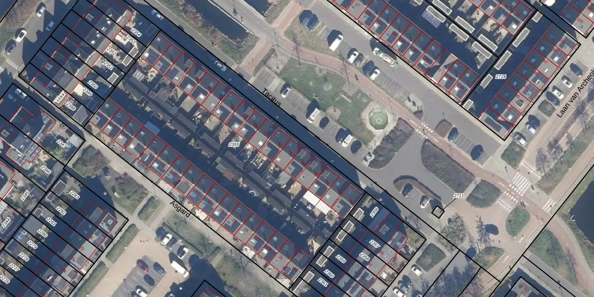 Het perceel waarop Tacitus 24 staat heeft een oppervlakte van 3700 m². Dit is een zeer groot perceel. De perceeloppervlakte wordt geregistreerd door het Kadaster. Gedetailleerde informatie over de maten van dit perceel kunt u vinden in het rapport Kadastrale kaart met maatvoering van Tacitus 24.