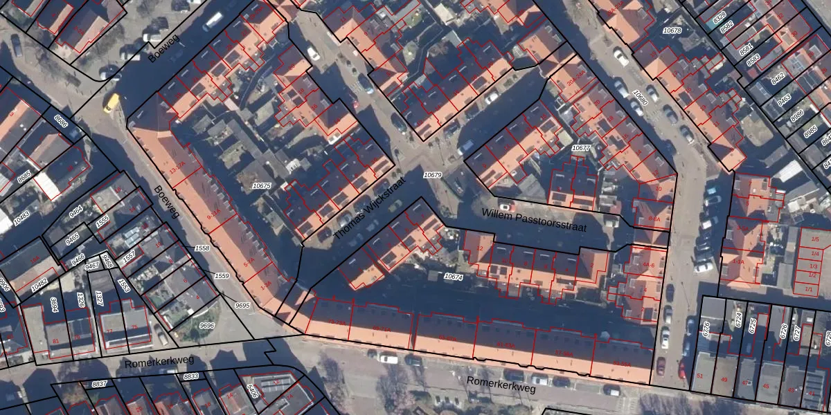 Het perceel waarop Thomas Wijckstraat 7 staat heeft een oppervlakte van 2434 m². Dit is een zeer groot perceel. De perceeloppervlakte wordt geregistreerd door het Kadaster. Gedetailleerde informatie over de maten van dit perceel kunt u vinden in het rapport Kadastrale kaart met maatvoering van Thomas Wijckstraat 7.