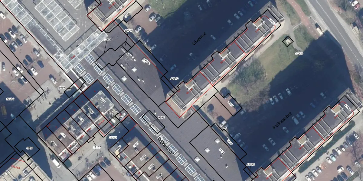 Het perceel waarop Uiverhof 104 staat heeft een oppervlakte van 1077 m². Dit is een zeer groot perceel. De perceeloppervlakte wordt geregistreerd door het Kadaster. Gedetailleerde informatie over de maten van dit perceel kunt u vinden in het rapport Kadastrale kaart met maatvoering van Uiverhof 104.