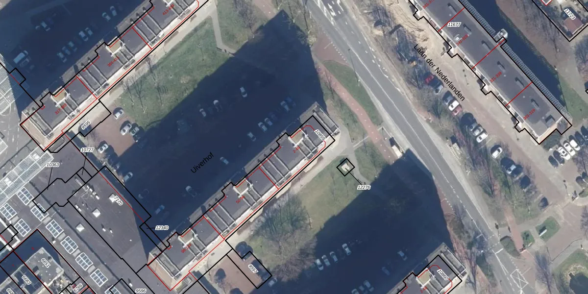 Het perceel waarop Uiverhof 18 staat heeft een oppervlakte van 1077 m². Dit is een zeer groot perceel. De perceeloppervlakte wordt geregistreerd door het Kadaster. Gedetailleerde informatie over de maten van dit perceel kunt u vinden in het rapport Kadastrale kaart met maatvoering van Uiverhof 18.