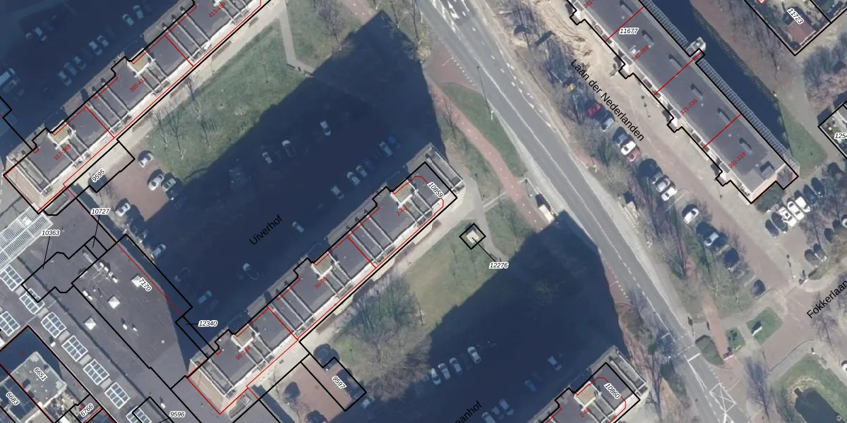 Het perceel waarop Uiverhof 40 staat heeft een oppervlakte van 1077 m². Dit is een zeer groot perceel. De perceeloppervlakte wordt geregistreerd door het Kadaster. Gedetailleerde informatie over de maten van dit perceel kunt u vinden in het rapport Kadastrale kaart met maatvoering van Uiverhof 40.