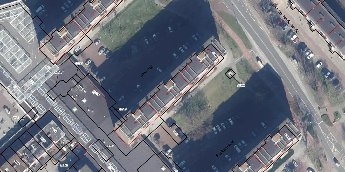 Het perceel waarop Uiverhof 64 staat heeft een oppervlakte van 1077 m². Dit is een zeer groot perceel. De perceeloppervlakte wordt geregistreerd door het Kadaster. Gedetailleerde informatie over de maten van dit perceel kunt u vinden in het rapport Kadastrale kaart met maatvoering van Uiverhof 64.