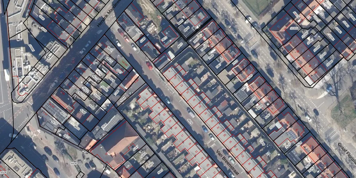 Het perceel waarop Van Breenstraat 12 staat heeft een oppervlakte van 3040 m². Dit is een zeer groot perceel. De perceeloppervlakte wordt geregistreerd door het Kadaster. Gedetailleerde informatie over de maten van dit perceel kunt u vinden in het rapport Kadastrale kaart met maatvoering van Van Breenstraat 12.
