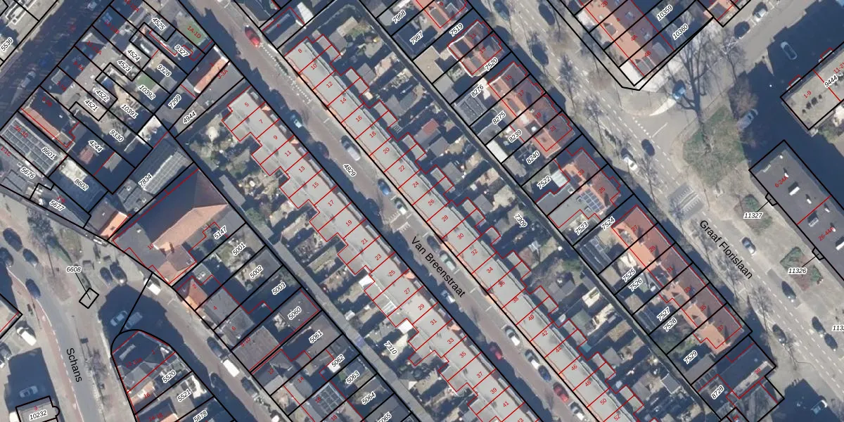 Het perceel waarop Van Breenstraat 26 staat heeft een oppervlakte van 3040 m². Dit is een zeer groot perceel. De perceeloppervlakte wordt geregistreerd door het Kadaster. Gedetailleerde informatie over de maten van dit perceel kunt u vinden in het rapport Kadastrale kaart met maatvoering van Van Breenstraat 26.