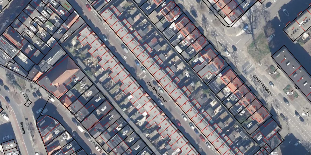 Het perceel waarop Van Breenstraat 28 staat heeft een oppervlakte van 3040 m². Dit is een zeer groot perceel. De perceeloppervlakte wordt geregistreerd door het Kadaster. Gedetailleerde informatie over de maten van dit perceel kunt u vinden in het rapport Kadastrale kaart met maatvoering van Van Breenstraat 28.