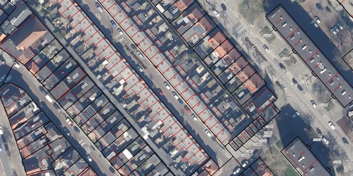Het perceel waarop Van Breenstraat 42 staat heeft een oppervlakte van 3040 m². Dit is een zeer groot perceel. De perceeloppervlakte wordt geregistreerd door het Kadaster. Gedetailleerde informatie over de maten van dit perceel kunt u vinden in het rapport Kadastrale kaart met maatvoering van Van Breenstraat 42.