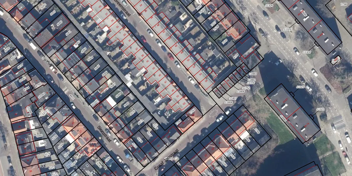 Het perceel waarop Van Breenstraat 49 staat heeft een oppervlakte van 2960 m². Dit is een zeer groot perceel. De perceeloppervlakte wordt geregistreerd door het Kadaster. Gedetailleerde informatie over de maten van dit perceel kunt u vinden in het rapport Kadastrale kaart met maatvoering van Van Breenstraat 49.