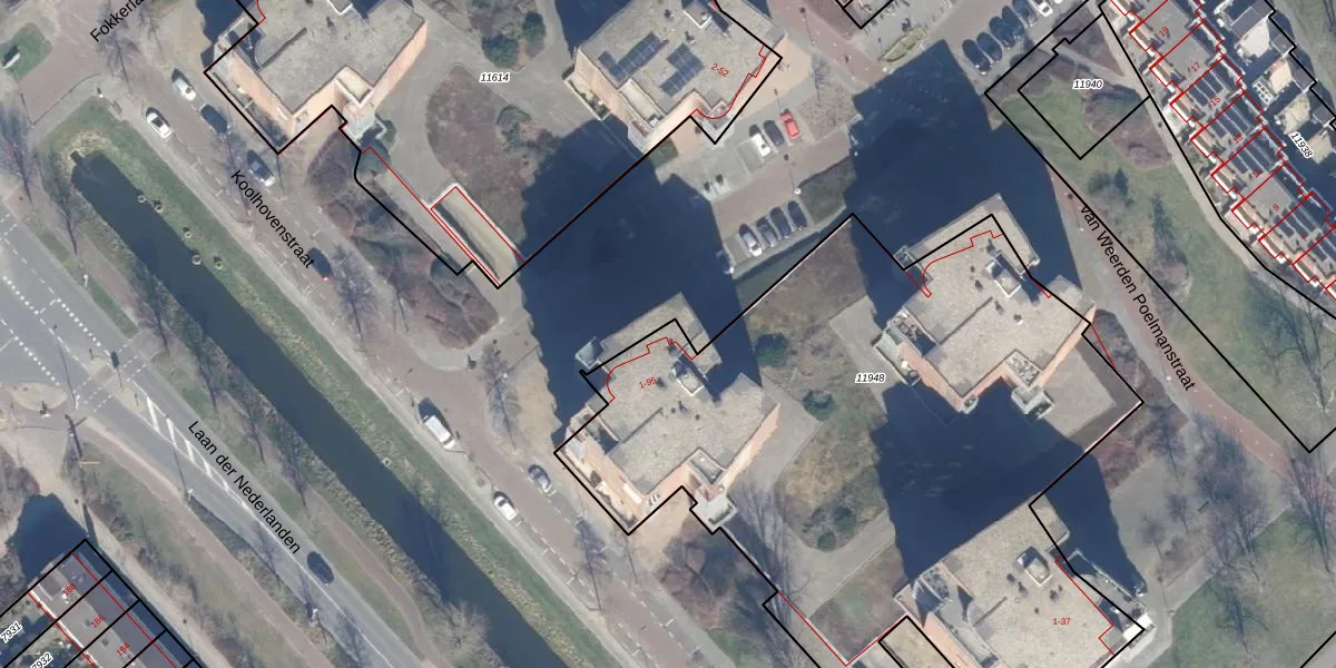 Het perceel waarop van der Hoopstraat 1-A staat heeft een oppervlakte van 3935 m². Dit is een zeer groot perceel. De perceeloppervlakte wordt geregistreerd door het Kadaster. Gedetailleerde informatie over de maten van dit perceel kunt u vinden in het rapport Kadastrale kaart met maatvoering van van der Hoopstraat 1-A.