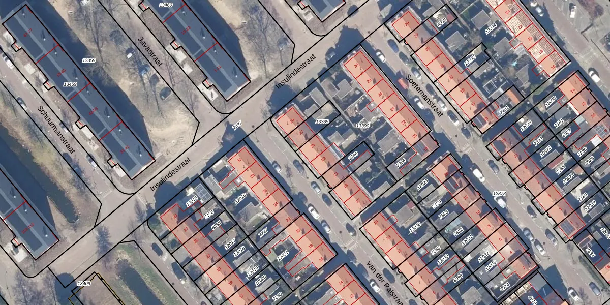 Het perceel waarop van der Palstraat 25 staat heeft een oppervlakte van 1315 m². Dit is een zeer groot perceel. De perceeloppervlakte wordt geregistreerd door het Kadaster. Gedetailleerde informatie over de maten van dit perceel kunt u vinden in het rapport Kadastrale kaart met maatvoering van van der Palstraat 25.