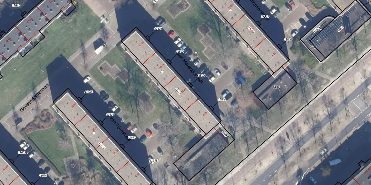 Het perceel waarop van Maasdijkstraat 28 staat heeft een oppervlakte van 758 m². Dit is een groot perceel. De perceeloppervlakte wordt geregistreerd door het Kadaster. Gedetailleerde informatie over de maten van dit perceel kunt u vinden in het rapport Kadastrale kaart met maatvoering van van Maasdijkstraat 28.