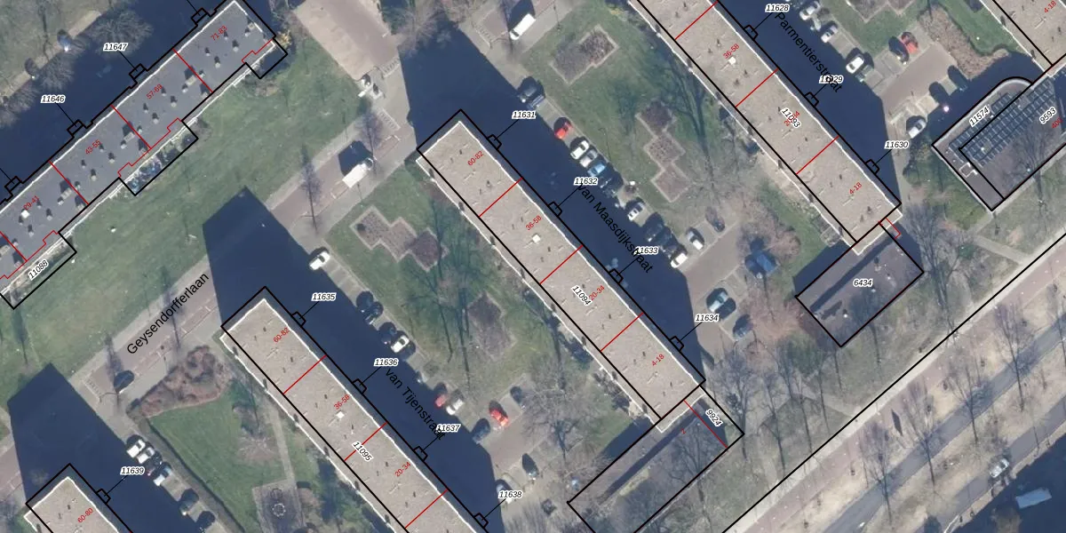 Het perceel waarop van Maasdijkstraat 54 staat heeft een oppervlakte van 758 m². Dit is een groot perceel. De perceeloppervlakte wordt geregistreerd door het Kadaster. Gedetailleerde informatie over de maten van dit perceel kunt u vinden in het rapport Kadastrale kaart met maatvoering van van Maasdijkstraat 54.