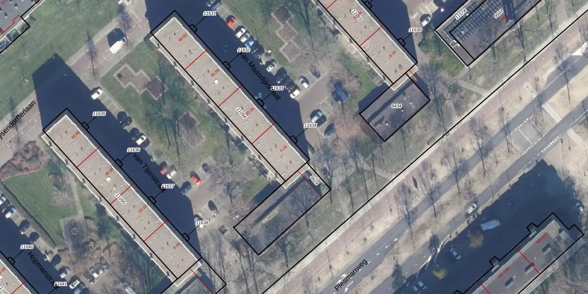 Het perceel waarop van Maasdijkstraat 6 staat heeft een oppervlakte van 758 m². Dit is een groot perceel. De perceeloppervlakte wordt geregistreerd door het Kadaster. Gedetailleerde informatie over de maten van dit perceel kunt u vinden in het rapport Kadastrale kaart met maatvoering van van Maasdijkstraat 6.