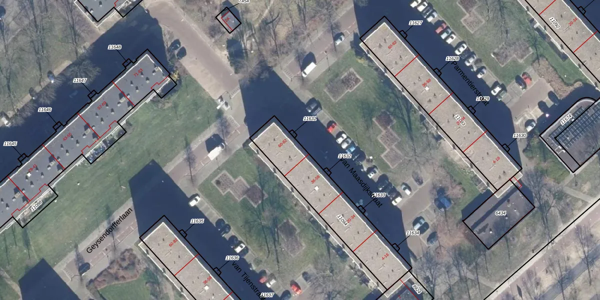 Het perceel waarop van Maasdijkstraat 60 staat heeft een oppervlakte van 758 m². Dit is een groot perceel. De perceeloppervlakte wordt geregistreerd door het Kadaster. Gedetailleerde informatie over de maten van dit perceel kunt u vinden in het rapport Kadastrale kaart met maatvoering van van Maasdijkstraat 60.