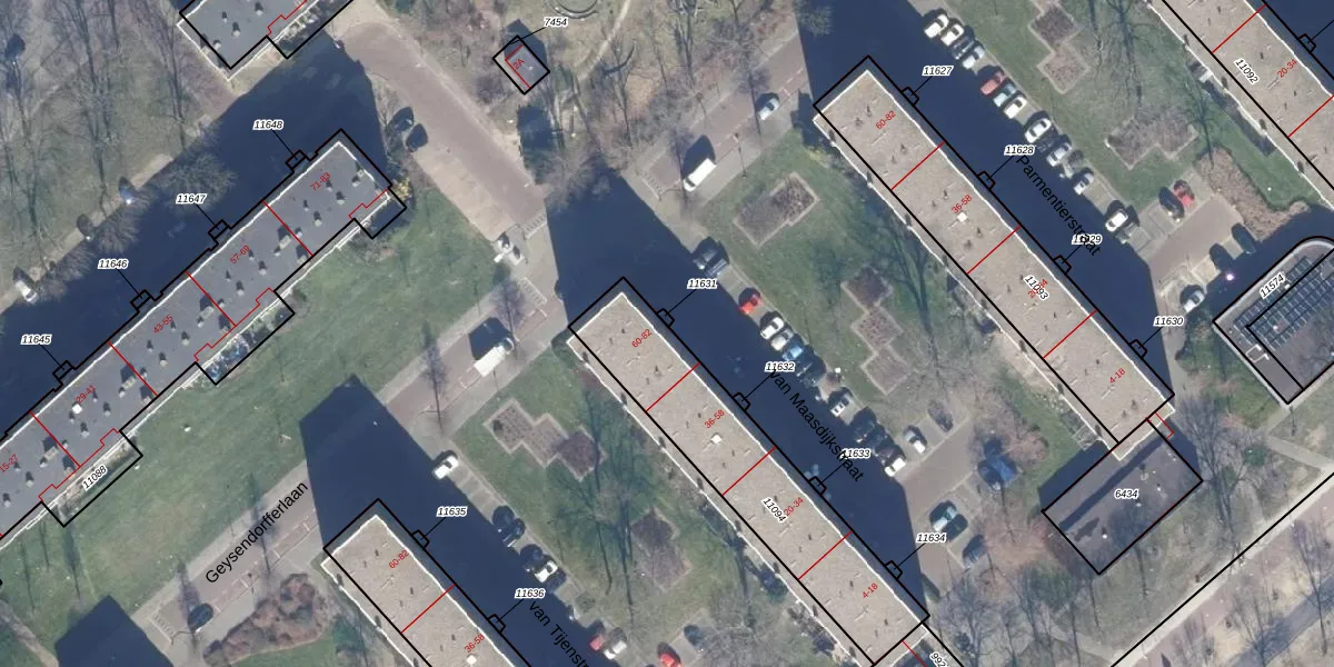 Het perceel waarop van Maasdijkstraat 62 staat heeft een oppervlakte van 758 m². Dit is een groot perceel. De perceeloppervlakte wordt geregistreerd door het Kadaster. Gedetailleerde informatie over de maten van dit perceel kunt u vinden in het rapport Kadastrale kaart met maatvoering van van Maasdijkstraat 62.
