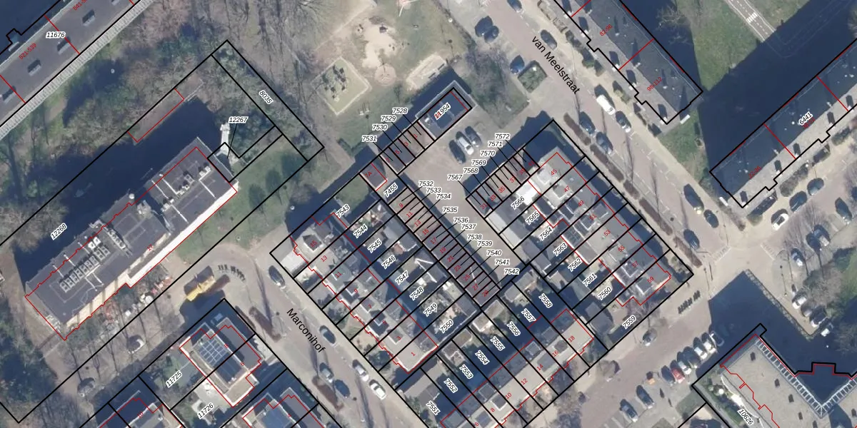 Het perceel waarop van Meelstraat 13 staat heeft een oppervlakte van 19 m². Dit is een klein perceel. De perceeloppervlakte wordt geregistreerd door het Kadaster. Gedetailleerde informatie over de maten van dit perceel kunt u vinden in het rapport Kadastrale kaart met maatvoering van van Meelstraat 13.