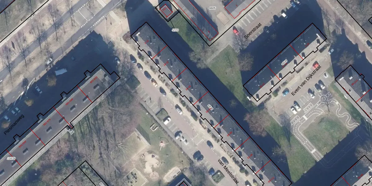 Het perceel waarop van Meelstraat 38 staat heeft een oppervlakte van 1346 m². Dit is een zeer groot perceel. De perceeloppervlakte wordt geregistreerd door het Kadaster. Gedetailleerde informatie over de maten van dit perceel kunt u vinden in het rapport Kadastrale kaart met maatvoering van van Meelstraat 38.
