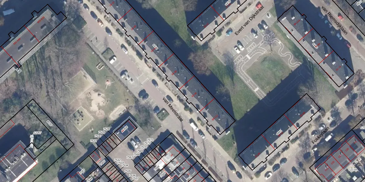 Het perceel waarop van Meelstraat 82 staat heeft een oppervlakte van 1346 m². Dit is een zeer groot perceel. De perceeloppervlakte wordt geregistreerd door het Kadaster. Gedetailleerde informatie over de maten van dit perceel kunt u vinden in het rapport Kadastrale kaart met maatvoering van van Meelstraat 82.