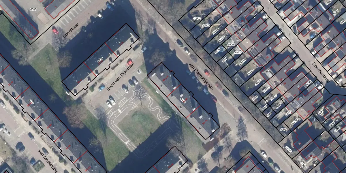 Het perceel waarop van Riemsdijklaan 104 staat heeft een oppervlakte van 581 m². Dit is een groot perceel. De perceeloppervlakte wordt geregistreerd door het Kadaster. Gedetailleerde informatie over de maten van dit perceel kunt u vinden in het rapport Kadastrale kaart met maatvoering van van Riemsdijklaan 104.