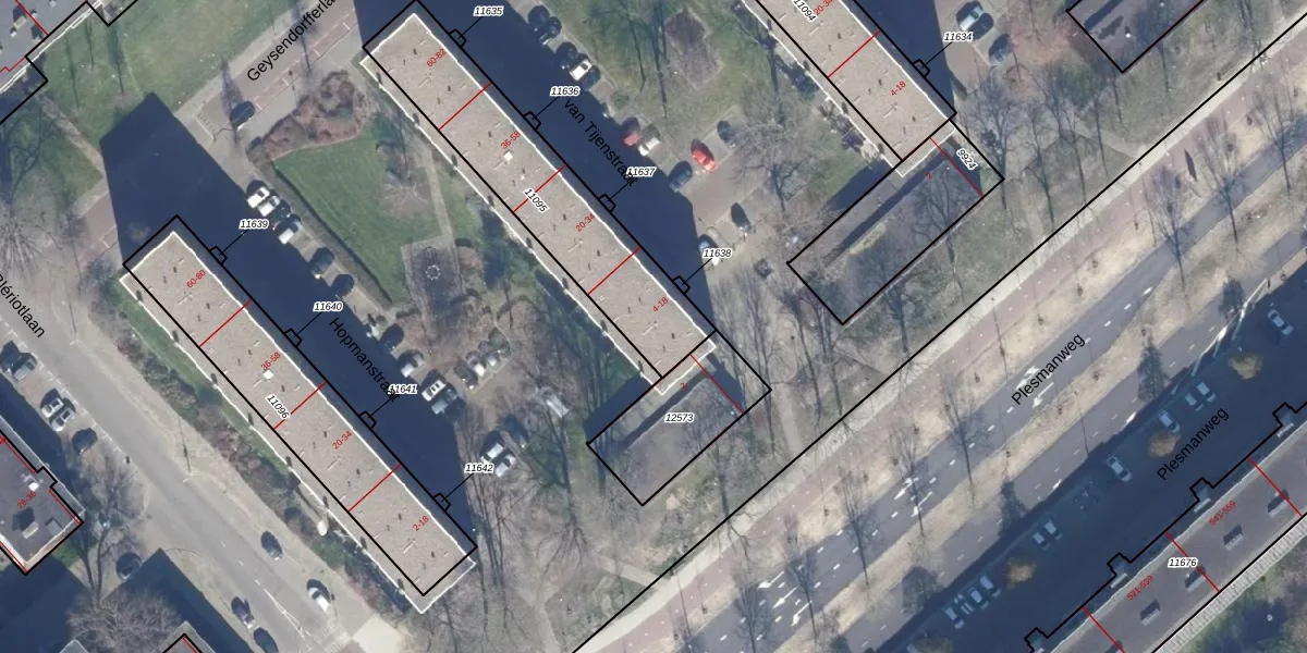 Het perceel waarop van Tijenstraat 18 staat heeft een oppervlakte van 758 m². Dit is een groot perceel. De perceeloppervlakte wordt geregistreerd door het Kadaster. Gedetailleerde informatie over de maten van dit perceel kunt u vinden in het rapport Kadastrale kaart met maatvoering van van Tijenstraat 18.