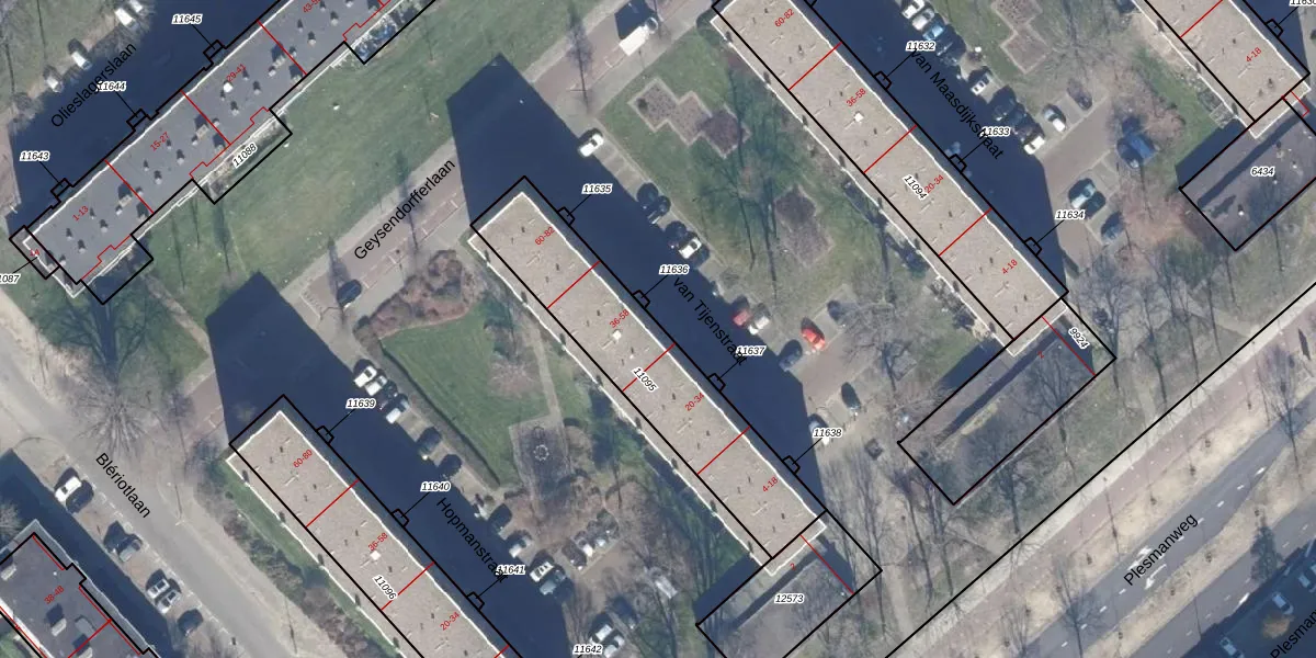 Het perceel waarop van Tijenstraat 36 staat heeft een oppervlakte van 758 m². Dit is een groot perceel. De perceeloppervlakte wordt geregistreerd door het Kadaster. Gedetailleerde informatie over de maten van dit perceel kunt u vinden in het rapport Kadastrale kaart met maatvoering van van Tijenstraat 36.